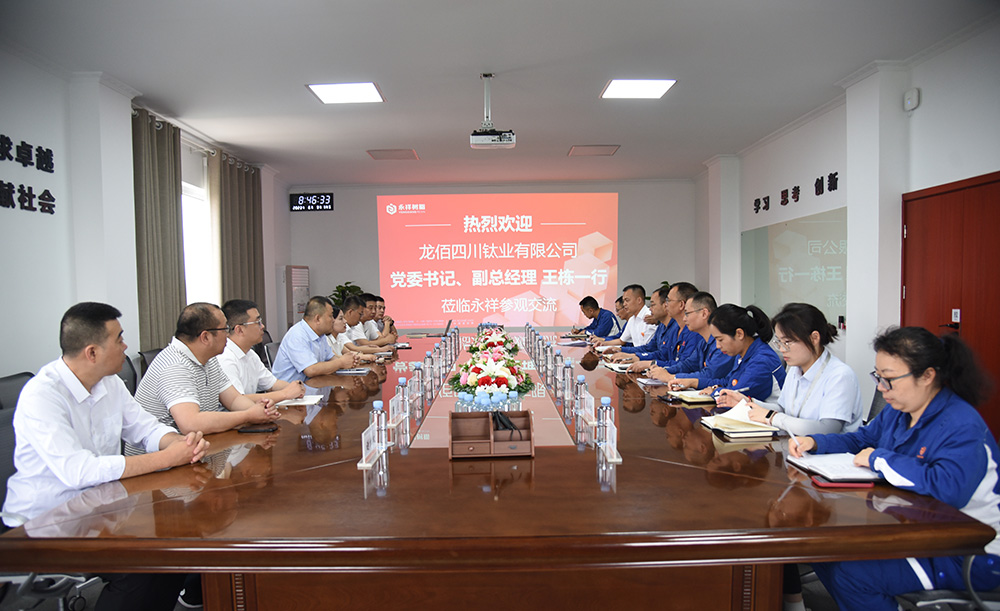 6月9日,龍佰四川鈦業有限公司黨委書記、副總經理王棟一行到訪永祥樹脂參觀交流。公司副總經理柳志勇、安全環保總監李繼承、總經理助理文龍熱情接待。