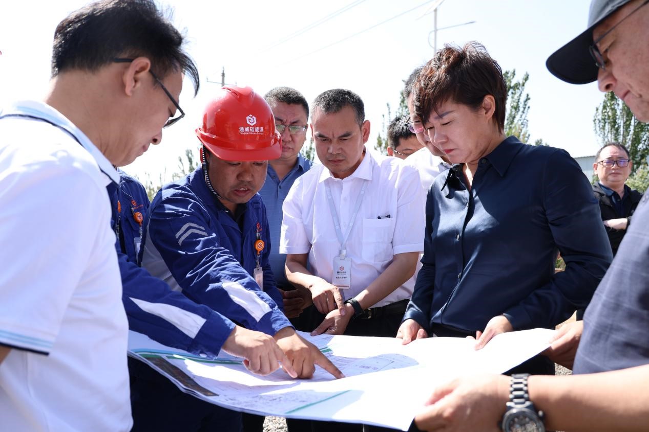 6月9日,昆都侖區(qū)委書記金永麗,區(qū)委副書記、政府區(qū)長田洪成蒞臨通威硅能源建設現(xiàn)場調(diào)研項目建設推進情況,項目指揮長游書華熱情接待。