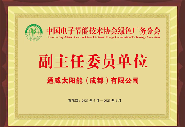 通威太陽能雙流基地當選“中國電子節能技術協會綠色廠務分會”副主任委員單位