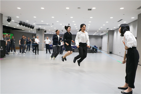 活動(dòng)現(xiàn)場,當(dāng)《童年》《同桌的你》《稻香》這些耳熟能詳?shù)母枨诙呿懫穑蠹壹娂姾铣路鹬蒙碛谥袑W(xué)時(shí)代,朗朗上口的童年廣告詞搶答讓大家回味“經(jīng)典”,跳格子、跳大繩、滾鐵圈時(shí)尚輪回,仿佛又讓大家回到了大課間,與同學(xué)嬉笑打鬧,展露笑顏,還有辣條、AD鈣奶、喔喔奶糖等記憶中的童年零食分享,好不快樂,學(xué)生時(shí)代是最好的時(shí)光。