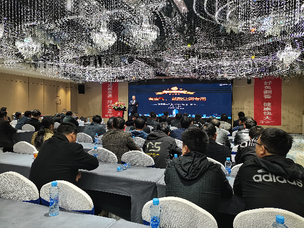 通威農(nóng)發(fā)水產(chǎn)研究所營(yíng)養(yǎng)師盧義以《賺錢才是硬道理》為主題,從當(dāng)前草魚養(yǎng)殖現(xiàn)狀分析、養(yǎng)殖破局之道、養(yǎng)殖增效方案三個(gè)方面闡述,讓廣大養(yǎng)殖戶朋友對(duì)目前面臨的養(yǎng)殖現(xiàn)狀有了充分的認(rèn)知。他提出用科學(xué)的養(yǎng)殖技術(shù),希望廣大養(yǎng)殖戶朋友們能在風(fēng)云變幻的養(yǎng)殖浪潮中獲得更高效益,做好養(yǎng)殖管理,從而降低養(yǎng)殖風(fēng)險(xiǎn),滿滿的干貨讓在場(chǎng)的新老客戶收獲頗豐。
