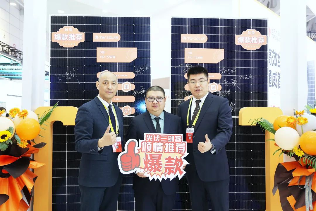展會期間,山東省太陽能行業協會常務副會長張曉斌、河北省光伏新能源商會秘書長馬獻立、河南省產業發展研究會新能源專委會秘書長姚峰蒞臨通威展臺,詳細了解了通威組件產品的性能及優勢,并向現場參展人員熱情推薦。三位嘉賓對通威產品及企業經營實力表示高度認可,并希望通威持續發揮龍頭企業的行業引領作用,為組件行業高質量發展做出更多貢獻。