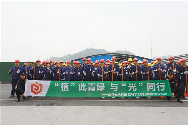 3月10日,永祥光伏科技、硅材料開展以“植此青綠,與光同行”為主題的植樹節(jié)活動。永祥光伏科技兼硅材料總經理袁中華,總經辦領導以及部門負責人、員工代表等70余人參與了此次植樹活動。