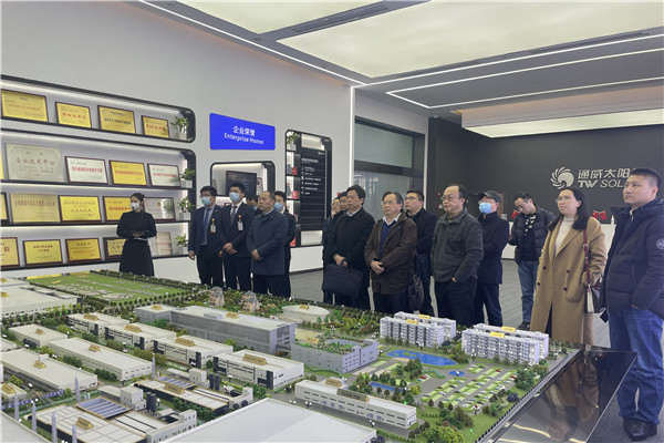 考察團一行在通威太陽能智能制造展廳參觀