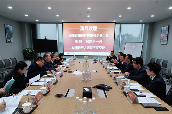 座談現場,宋梟總全面介紹通威太陽能的發展情況、產業規模、研發投入以及公司對科技創新能力和知識產權管理的重視。李軼巡視員對通威太陽能的發展、創新研發實力以及知識產權管理等方面表示高度肯定和贊揚;在考察交流環節,參評專利發明人從公司情況、參評專利技術、專利保護等方面向考察團一行匯報了公司申報專利獎項目,考察團各位專家、評審對參評專利項目提出了很多寶貴的建議和意見。