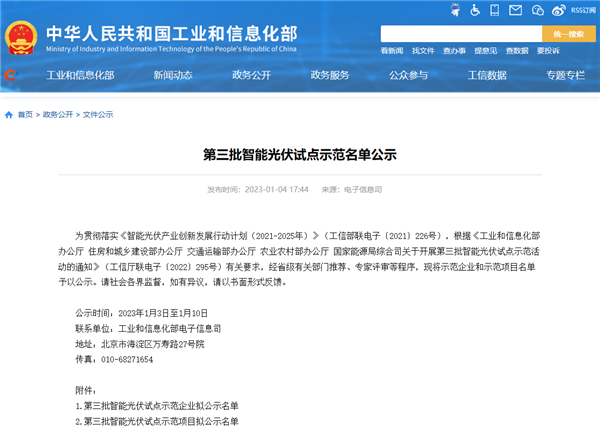 為貫徹落實《智能光伏產業創新發展行動計劃(2021—2025年)》(工信部聯電子〔2021〕226號),根據《工業和信息化部辦公廳、住房和城鄉建設部辦公廳、交通運輸部辦公廳、農業農村部辦公廳、國家能源局綜合司關于開展第三批智能光伏試點示范活動的通知》(工信廳聯電子〔2022〕295號)有關要求,經企業自主申報、省級有關部門推薦、專家評審等程序,評選出一批代表了光伏行業智能生產水平的制高點,促進光伏產業邁向全球價值鏈高端發展的企業。