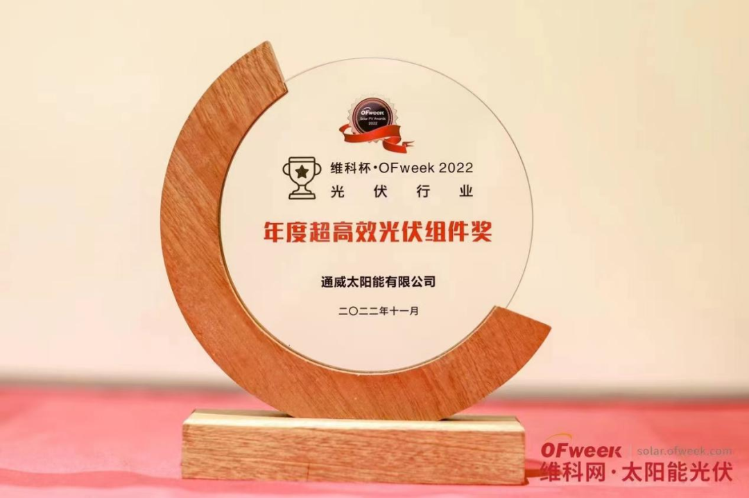 通威太陽能榮獲維科杯·OFweek 2022年度超高效光伏組件獎(jiǎng)