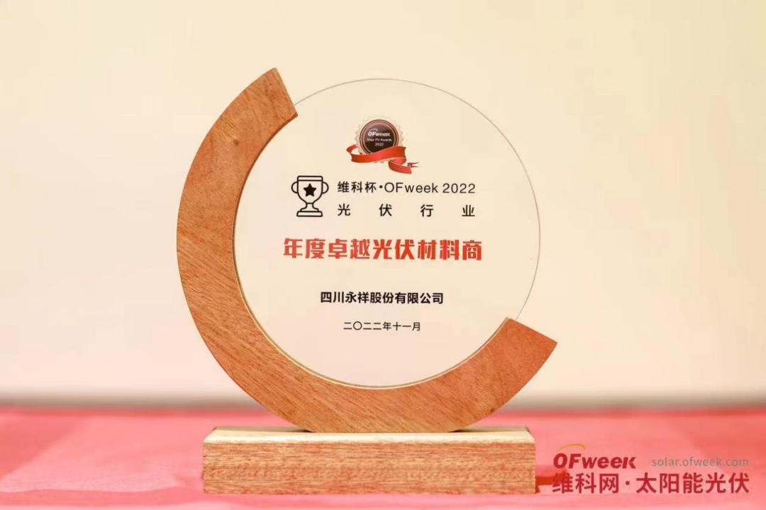 通威旗下永祥股份榮獲維科杯·OFweek 2022年度卓越光伏材料商獎(jiǎng)