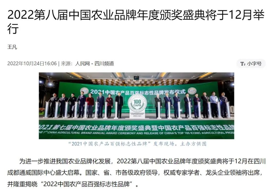 人民網聚焦2022第八屆中國農業品牌年度頒獎盛典