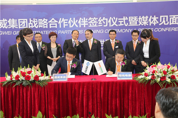 2015年4月28日,通威亮相SNEC第九屆國(guó)際太陽(yáng)能產(chǎn)業(yè)及光伏工程(上海)展覽會(huì)暨論壇,并隆重舉行“通威集團(tuán)戰(zhàn)略合作伙伴簽約儀式”,通威集團(tuán)先后與多家公司達(dá)成合作,打造優(yōu)勢(shì)互補(bǔ)、資源共享、共同發(fā)展的戰(zhàn)略合作伙伴關(guān)系。