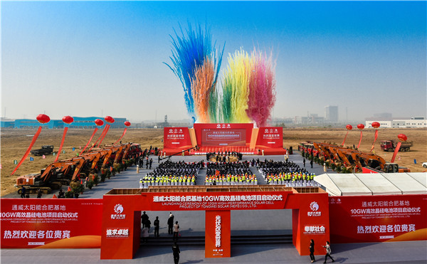 2017年11月8日,通威太陽(yáng)能合肥基地10GW高效晶硅電池項(xiàng)目啟動(dòng)儀式隆重舉行。該項(xiàng)目的開工建設(shè)將進(jìn)一步突顯通威太陽(yáng)能在高效晶硅電池領(lǐng)域的規(guī)模優(yōu)勢(shì)、成本優(yōu)勢(shì)及質(zhì)量?jī)?yōu)勢(shì),強(qiáng)化提升市場(chǎng)競(jìng)爭(zhēng)力,助力公司打造世界級(jí)光伏企業(yè)和世界級(jí)清潔能源公司。