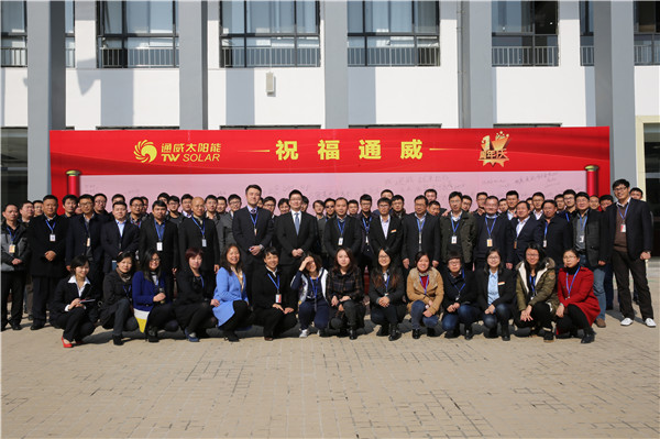 2014年11月18日,通威太陽(yáng)能(合肥)有限公司舉行投產(chǎn)周年慶活動(dòng),工廠近400名員工代表參加了本次活動(dòng)。通威集團(tuán)董事局劉漢元主席發(fā)來(lái)賀信,對(duì)公司投產(chǎn)周年慶表示祝賀并提出殷切希望,鼓勵(lì)大家持之以恒地發(fā)展太陽(yáng)能光伏新能源事業(yè),為把通威太陽(yáng)能建設(shè)成為世界一流的清潔能源企業(yè)而努力奮斗!