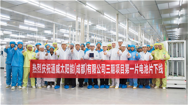 2018年11月18日,通威太陽(yáng)能三期項(xiàng)目投產(chǎn)暨1GW超高效異質(zhì)結(jié)電池項(xiàng)目開工儀式隆重舉行。項(xiàng)目實(shí)際建設(shè)周期僅用六個(gè)半月時(shí)間,再次刷新“全球速度”,并將成為目前全球光伏行業(yè)工藝技術(shù)、生產(chǎn)設(shè)備以及自動(dòng)化、智能化程度都領(lǐng)先的單體規(guī)模最大的高效晶硅太陽(yáng)能電池項(xiàng)目。