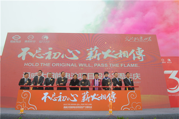 2015年11月18日,通威太陽(yáng)能電池項(xiàng)目投產(chǎn)2周年慶暨雙流5GW高效晶硅電池項(xiàng)目啟動(dòng)儀式隆重舉行,通威太陽(yáng)能正式開啟合肥、成都兩地“雙城時(shí)代”。