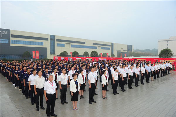 2016年8月8日上午8點(diǎn)8分,通威太陽(yáng)能(成都)有限公司項(xiàng)目竣工首次升旗儀式隆重舉行。升旗儀式后,通威集團(tuán)董事局劉漢元主席發(fā)表重要講話指出,隨著雙流5GW高效晶硅電池項(xiàng)目一期的竣工,通威太陽(yáng)能(成都)有限公司的發(fā)展開啟了全新篇章,必將以最快的速度、最高的效率,昂首闊步在神州大地。