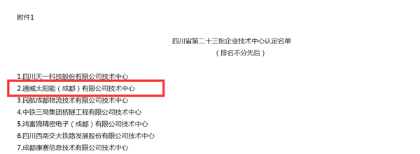 技術中心是企業(yè)設立的具有較高層次和水平的研究開發(fā)機構,是企業(yè)技術創(chuàng)新體系的核心。為確立企業(yè)技術創(chuàng)新的主體地位,鼓勵和引導企業(yè)不斷提高自主創(chuàng)新能力,四川省經(jīng)濟和信息化委員會于2018年5月下旬啟動2018年省企業(yè)技術中心認定和評價工作。根據(jù) 《四川省企業(yè)技術中心認定管理辦法》(川經(jīng)信技創(chuàng)〔2017〕130號)和《四川省企業(yè)技術中心認定評價工作指南(試行)》(川經(jīng)信辦技創(chuàng)〔2017〕60號)有關規(guī)定,經(jīng)各市(州)、擴權試點縣(市)工業(yè)經(jīng)濟主管部門進行推薦、初審、專家評審、現(xiàn)場核查核實情況、公示等綜合評價程序后,通威太陽能(成都)有限公司成功入列2018年四川省第二十三批企業(yè)技術中心認定名單。