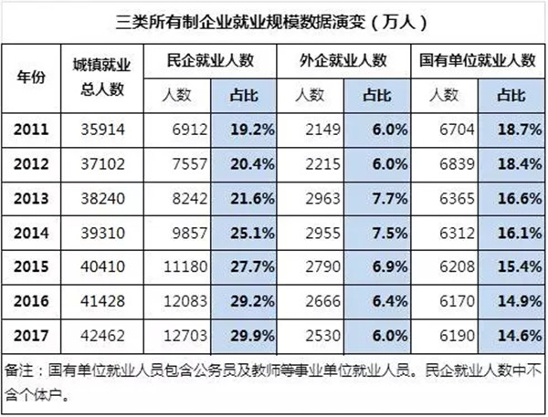 總結(jié)起來,民企雖然生存艱難,但是提供了越來越多的就業(yè)崗位,其就業(yè)人數(shù)占比從2011年的19.2%提升到2017年的29.9%,民企乃是我大中國經(jīng)濟的頂梁柱;外企大致維持在6-7%之間,算是我大中國經(jīng)濟的定海針。唯有國有單位這邊,即便包含了公務(wù)員在內(nèi),也無法提供足夠的就業(yè)崗位,就業(yè)人數(shù)占比從2011年的18.7%堅定的下降到2017年的14.6%,只相當于民企的一半。總結(jié)起來看,占有了最多資源的國有企業(yè)在凈資產(chǎn)收益率、凈出口和就業(yè)這三方面同時表現(xiàn)出極度的弱勢。