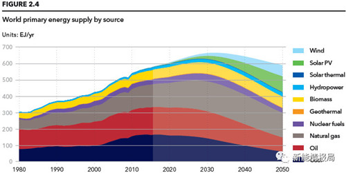 到本世紀中葉,用電量將增加一倍以上,達到世界能源需求的45%,光伏發電和風電將供應三分之二的電力。能源轉型是可以承受的。預計到2050年,能源支出占世界GDP的比例將比現在低。從2029年開始,電網和可再生能源領域的支出將超過化石能源。隨著風電和光伏成本的持續下降,這兩種能源將滿足大部分的電力需求,光伏將占發電量的40%,風電占29%。