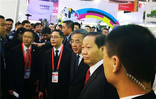 中共中央政治局委員、國務院副總理胡春華,四川省委書記彭清華等領(lǐng)導考察通威所在的“一帶一路”合作館