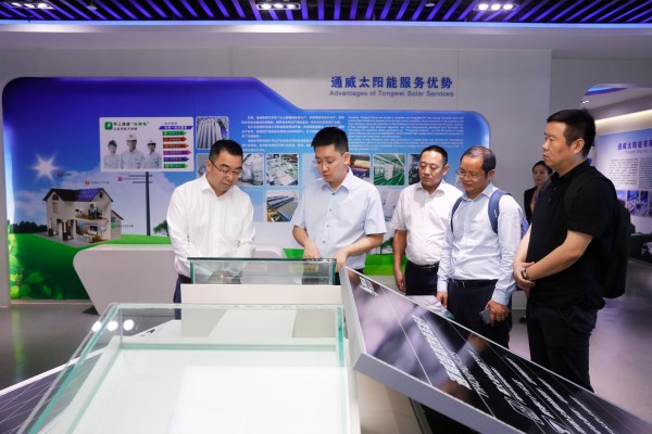 張勝書(shū)記一行首先參觀了通威集團(tuán)體驗(yàn)中心,詳細(xì)了解了通威綠色農(nóng)業(yè)、新能源雙主業(yè)發(fā)展現(xiàn)狀及通威太陽(yáng)能發(fā)展規(guī)劃、市場(chǎng)經(jīng)營(yíng)情況,并對(duì)通威36年來(lái)的發(fā)展成果及通威太陽(yáng)能幾年內(nèi)取得的優(yōu)異成績(jī)給予了高度評(píng)價(jià)。
