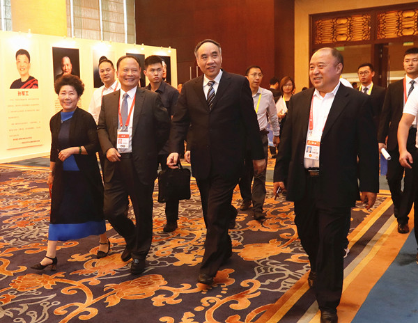 劉漢元主席與出席論壇的領(lǐng)導(dǎo)共同步入會場