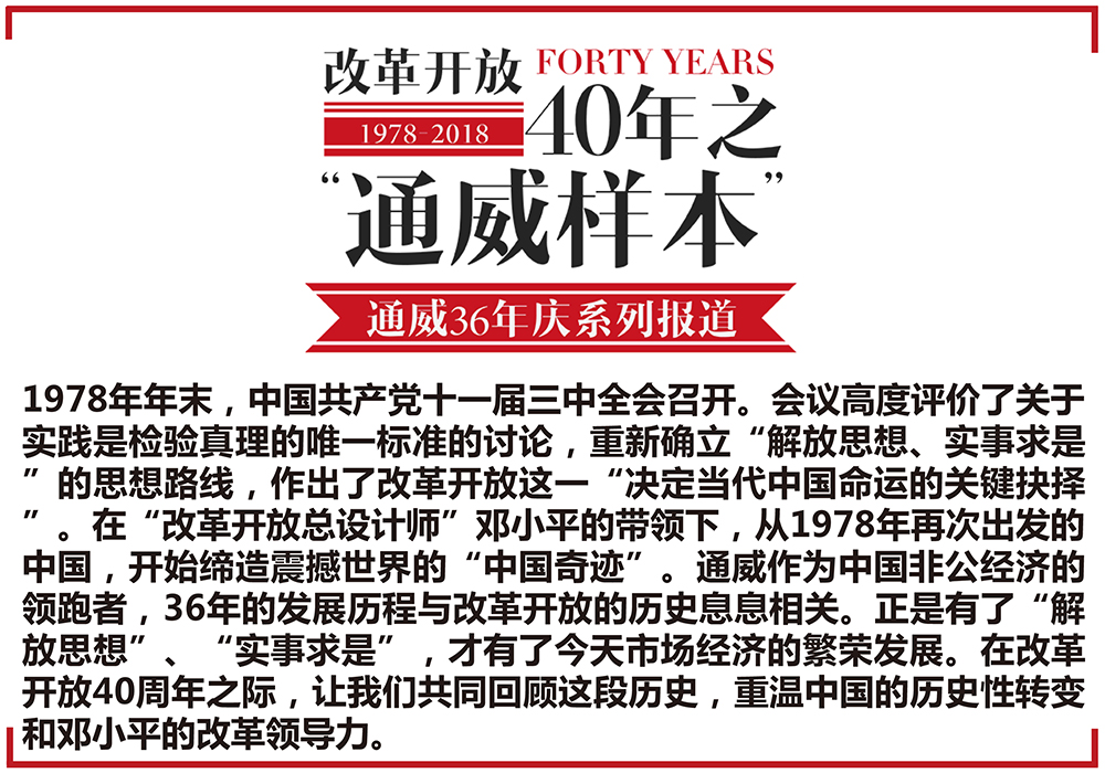 通威作為中國非公經(jīng)濟(jì)的領(lǐng)跑者,36年的發(fā)展歷程與改革開放的歷史息息相關(guān)。正是有了“解放思想”、“實(shí)事求是”,才有了今天市場經(jīng)濟(jì)的繁榮發(fā)展。在改革開放40周年之際,讓我們共同回顧這段歷史,重溫中國的歷史性轉(zhuǎn)變和鄧小平的改革領(lǐng)導(dǎo)力。