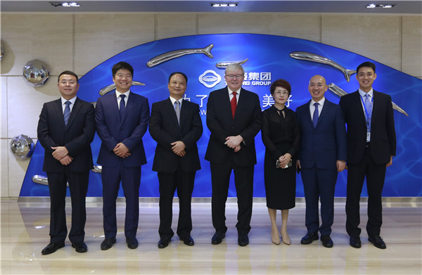 8月6日,澳大利亞前總理、美國亞洲協會政策研究院院長陸克文先生一行蒞臨通威考察。十一屆全國政協常委、全國人大代表、通威集團董事局劉漢元主席,通威集團禚玉嬌總裁,通威集團副總裁黃其剛熱情接待并座談。