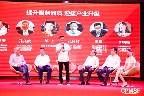 深圳市美易家商務(wù)服務(wù)集團(tuán)股份有限公司副總裁張志宏,復(fù)星集團(tuán)上海高地物業(yè)管理有限公司總裁助理孔凡武,瑞福生集團(tuán)董事長(zhǎng)鄒杰,誠(chéng)悅時(shí)代物業(yè)服務(wù)有限公司總經(jīng)理張懷林,錦江區(qū)商務(wù)樓宇物業(yè)管理協(xié)會(huì)會(huì)長(zhǎng)、成都?xì)W菲物業(yè)服務(wù)有限公司總經(jīng)理陳曦,成都嘉善商務(wù)服務(wù)管理有限公司總經(jīng)理李軼梅圍繞“提升服務(wù)品質(zhì),迎接產(chǎn)業(yè)升級(jí)” 進(jìn)行了熱烈討論與分享。