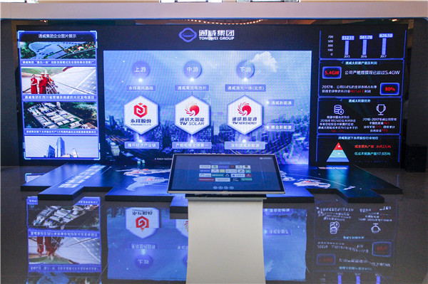 當天下午,四川省副省長王一宏在四川館巡館期間蒞臨通威集團展臺參觀,黃總詳細介紹了通威集團發展情況,特別重點介紹了集團新能源產業當前發展情況及未來發展規劃。黃總表示,經過36年的穩健、快速發展,通威集團已成為以農業和新能源為雙主業的大型跨國集團,目前擁有遍布全國及海外地區的170余家分子公司、近3萬名員工,2017年集團實現銷售收入超過620億元,品牌價值突破450億元大關,已成為全球最大的水產飼料生產企業及全球光伏產業的核心參與者和重要推動力量。王一宏副省長聽取黃總的匯報后,勉勵通威要穩固并不斷提升已形成的產業優勢,銳意進取、奮勇拼搏,以智能制造為抓手,助力四川省產業的轉型升級,不斷推動四川乃至全國新能源產業的發展。