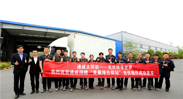 本次用于捐贈“青藏綠色驛站”昆侖山、三江源、風火山三處站點的光伏組件全部準備完畢,并在通威太陽能(合肥)有限公司成功發車。通威綠色能源挺進青藏“無人區”的征程正式開始!