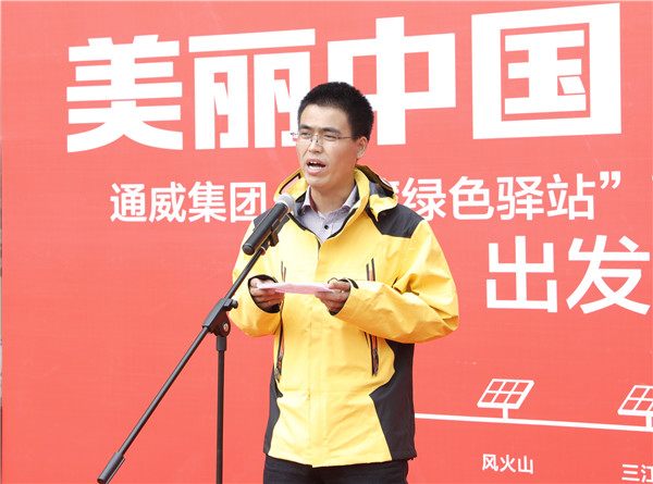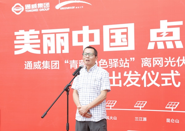 當天儀式上,李大放秘書長代表綠色江河組織發言。李秘書長對通威集團向綠色江河公益捐贈的三套離網光伏發電系統表示衷心感謝,并表示,20年來,綠色江河堅持從事江河上游地區的綠色環境保護,先后建立索南達杰自然保護站、長江源水生態環境保護站,并從2016年起,協同青海政府建立“青藏綠色驛站”,進一步推動青藏公路沿線的環境保護工作。本次,通威為綠色江河捐贈的三套離網光伏發電系統將有效解決“青藏綠色驛站”正常運行的瓶頸問題,為環保工作帶來了一場“及時雨”,使驛站能夠更好地為青藏高原生態保護服務。李秘書長對通威志愿者前往驛站參與環境保護工作表示感謝,并預祝即將啟程的志愿者們一路順利,活動取得圓滿成功!