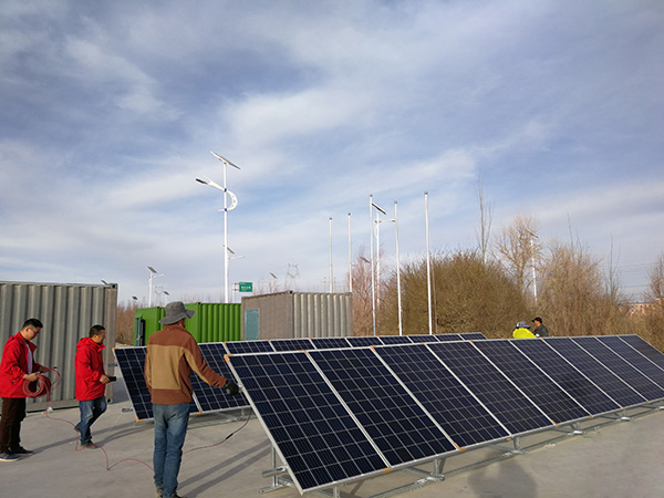 據了解,本次離網光伏發電系統的全部組件均由通威集團新能源產業鏈中游的通威太陽能有限公司提供;光伏系統安裝建設由產業鏈下游的通威新能源公司負責。為了準備高原氣候下的建設工作,負責項目建設的新能源工作人員4月13日就抵達了格爾木,對高原氣候工作下的器具、安裝輔材、相關物資等進行集中采購和準備。在光伏組件抵達格爾木后,項目工作人員迅速在“青藏綠色驛站”格爾木驛站開始了光伏發電系統的首次發電、調試工作。