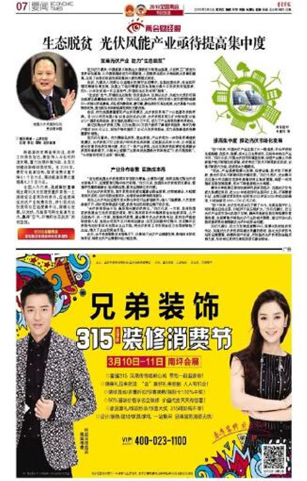 全國人大代表、通威集團董事局主席劉漢元在接受重慶商報—上游財經記者采訪時表示,應適度降低光伏產業稅費負擔,并引導光伏扶貧項目應適度集中化、規?;l展,以光伏、風能等可再生能源為主力,贏得“空氣、環境和生態脫貧”的攻堅戰。