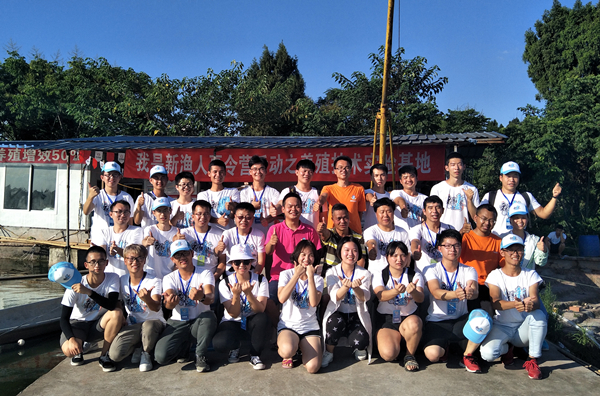 2017年7月,參加通威大學(xué)“我是新漁人夏令營(yíng)活動(dòng)”的水產(chǎn)學(xué)子參觀黃老板的養(yǎng)殖基地