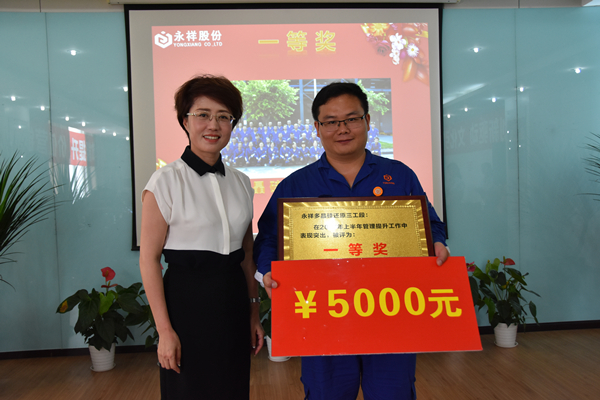 最后,禚總指出,通過大家的努力,永祥實現了劉主席和集團要求的技術領先、制造領先、成本領先、管理領先、團隊意識領先、團隊風清氣正領先,并勉勵大家再接再厲,不斷提升,與企業共同成長,“有實力就有尊嚴,有價值就有地位”?!翱梢誀N爛,但不驕傲;可以自豪,但不止步”,不忘初心,勇往直前!