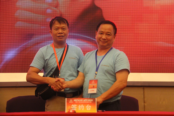 會議最后,南寧通威總經理王林代表南寧通威、賓陽通威與各位經銷商簽訂加盟協議,通過本次會議對通威農合社的一番了解后,現場有近30位經銷商果斷加盟,定料10000多噸。未來2個月,這些經銷商將借助通威農合社這股東風在新模式中揚帆起航,締造一份嶄新的輝煌事業。