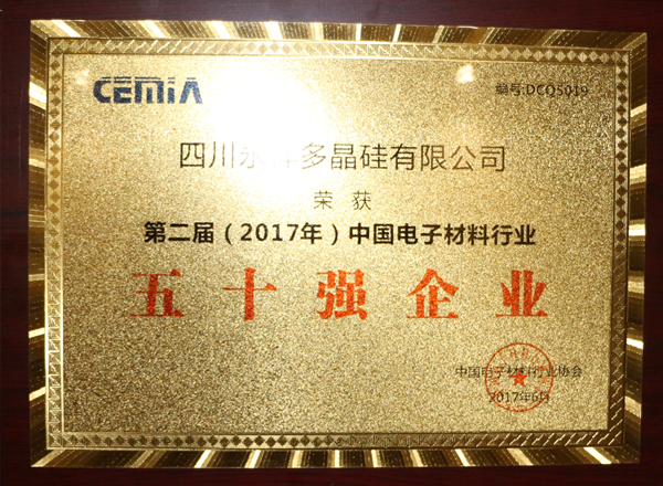 永祥多晶硅喜獲中國電子材料行業協會50強和半導體材料專業十強企業稱號