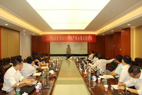 在隨后舉行的水產商業模式研討會上,郭總指出,根據通威“漁光一體”戰略發展模式,劉漢元主席近期再次強調了模式的重要性,希望大家借鑒行業優秀模式的經驗,打造具有通威特色的“公司+農戶”模式。郭總表示,大家應提前思考模式如何打造和推進,重點圍繞“園區內、外”水面未來運營模式深度探討,積極進行思維碰撞,在運作中不斷完善思維模式。
