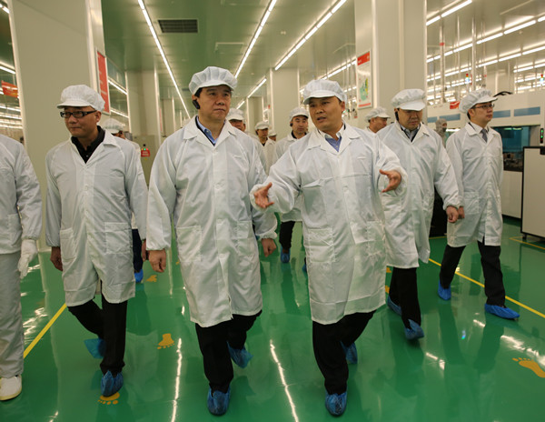 劉漢元主席陪同崔洪剛市長參觀通威太陽能(成都)有限公司S1電池車間