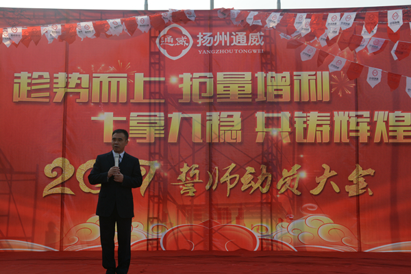 會議最后,通威股份副總裁兼華東戰區總裁王尚文對2017年揚州公司工作作重要指示,王總指出,2017年魚價持續上漲,為今年水產業帶來了新氣象,為實現銷量突破提供有利條件。揚州公司高郵三垛新廠動工在即,為新廠的建成投產打下基礎,同時,公司擁有優秀的員工團隊和良好的市場口碑,一直堅持高質高價、優質優價、高性價比的原則,深耕核心市場局勢聚焦。相信揚州通威全體員工一定能牢記2017年定下的銷量目標,團結協作再創佳績!