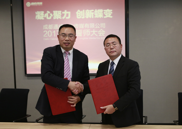 公司各部門負責人分別與甘總簽訂目標責任書;甘總代表通威傳媒與集團副總裁黃其剛簽訂目標責任書。各部門負責人承諾,將以最好的狀態、最高的執行力和最強的戰斗力,以最大信心和決心,不辱傳媒使命、不負主席期待、全力以赴達成公司年度各項經營指標。