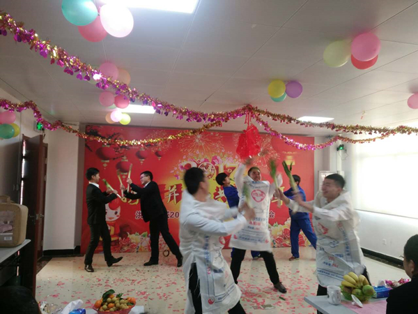 動員會后,洪湖通威元宵晚會隨即舉行。開場舞《向前沖》積極向上充滿朝氣與活力;后勤的員工帶來的舞蹈《開門紅》,表演的男士身穿大紅衣舞著大紅綢,女士身穿大紅袍舞著大紅燈籠,火紅一片,頗為喜慶,男士動作剛勁,女士動作柔美,完美配合;《甩蔥舞》創意新穎、7位男士詼諧動作,爆笑全場;工會主席表演了舞蹈《女兒情》,婀娜的舞姿、靚麗唯美的表演贏得了全場的陣陣掌聲;最經典要數生產部一對夫妻帶來的舞蹈《回娘家》,用活潑風趣的表演,表現了一個回娘家的小媳婦歡快的心情。最終,該節目眾望所歸的獲得一等獎。