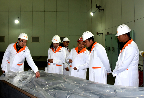 段忠華書記一行首先參觀了永祥體驗(yàn)中心,了解了永祥的發(fā)展歷程、經(jīng)營(yíng)管理、企業(yè)文化和未來發(fā)展等情況,隨后參觀了在多晶硅還原車間現(xiàn)場(chǎng),了解了多晶硅的生產(chǎn)過程及生產(chǎn)工藝,并進(jìn)入尾聲的硅材料項(xiàng)目建設(shè)現(xiàn)場(chǎng)參觀了先進(jìn)的設(shè)備,感受了軍事化的建設(shè)速度。段書記認(rèn)真聽取匯報(bào),細(xì)致觀看現(xiàn)場(chǎng),對(duì)永祥的花園式工廠和取得的成果給予高度評(píng)價(jià)。段雍董事長(zhǎng)感謝段忠華書記的來訪指導(dǎo),并表示,希望通過此次交流,雙方增進(jìn)了解,尋求合作空間。