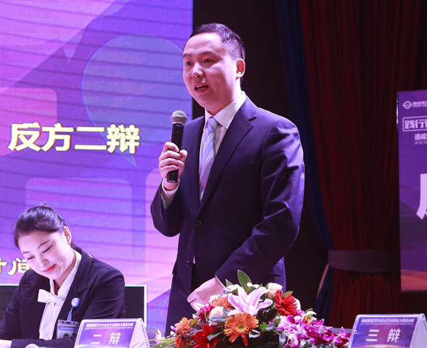 在攻辯環(huán)節(jié),雙方持續(xù)不斷的問答模式,如行云流水,將現(xiàn)場氣氛達(dá)到了高潮。最后,本次兩位辯論專家對本場比賽進(jìn)行了點評。余玥教授表示,雙方辯手各有千秋,雙方的比喻和一些觀點運用得比較好,但雙方語速都較快,思考時間不夠,導(dǎo)致出現(xiàn)意外,辯手對自己可“人性化”一些。丁三東老師在點評時說到,舉辦這場辯論賽的目的是讓大家更好地展示自己風(fēng)采,促使大家對企業(yè)文化有更深入的認(rèn)識。辯論賽可以用各種方法說服別人,以情感人、以理服人,辯論賽充分展示了大家的水準(zhǔn),整體非常不錯。