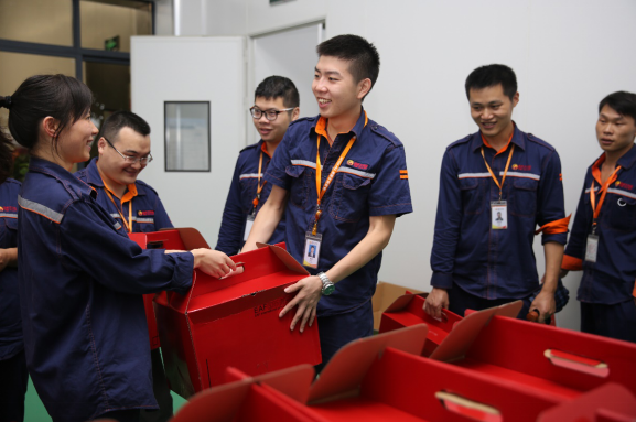 9月13日下午,經(jīng)過通威太陽能(成都)公司工會、行政部歷時1個多月的準備,中秋節(jié) “大禮包”終于派發(fā)到廣大員手中。通威太陽能(成都)有限公司工會主席、行政部部長王耀頤表示:“公司年輕人多,這次也為他們‘量身定制’了酥皮月餅、進口牛奶、進口谷物水果麥片?!睘榱朔奖銌T工將公司的中秋心意帶回家,還專門為“大禮包”定制了手提箱。