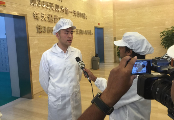 南亞、東南亞記者團首先來到通威太陽能(成都)有限公司參觀,在S1車間,通威太陽能(合肥、成都)有限公司首席財務官周丹詳細介紹了公司目前產(chǎn)能情況及電池片生產(chǎn)工藝,記者團一行對5GW高效晶硅電池項目建設規(guī)劃情況興趣濃厚,孟加拉國ATN電視臺對周總進行了采訪。