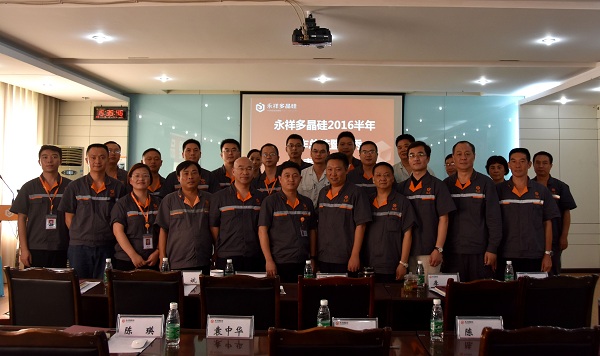 會上,永祥股份董事、永祥多晶硅執(zhí)行總經(jīng)理甘居富致辭。甘總表示,2016年上半年是極不平凡的半年,前進(jìn)的道路充滿艱辛和困難,成績來之不易。就此,他代表公司向永祥多晶硅全體員工的辛勤付出,董事會領(lǐng)導(dǎo)、本部同仁的關(guān)心和支持表示了衷心感謝。甘總指出,永祥多晶硅以“提升管理、品質(zhì)營銷、務(wù)實創(chuàng)新、行業(yè)爭先”為指導(dǎo)思想,以“建標(biāo)立制、強化執(zhí)行”為基本思路,定規(guī)則、抓落實,扎實地體現(xiàn)在標(biāo)準(zhǔn)化推進(jìn)、JCC落實、安全管理、降本增效、企業(yè)文化建設(shè)等工作中。員工對工作標(biāo)準(zhǔn)化、技能提升、文化建設(shè)的積極參與意識越來越強,公司上下呈現(xiàn)出團(tuán)結(jié)拼搏、苦干實干的良好風(fēng)貌。甘總號召公司全體員工認(rèn)清形勢,堅定信心,為實現(xiàn)年度生產(chǎn)經(jīng)營目標(biāo)而卯足干勁,全力沖刺。