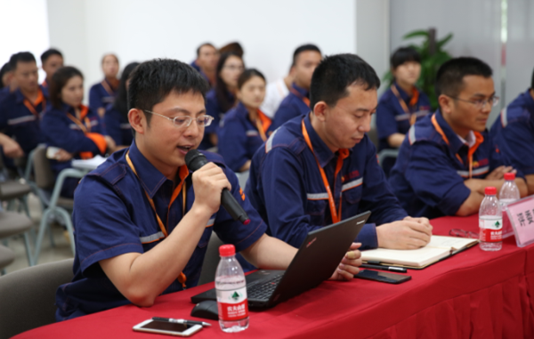 7月25日,通威太陽能(成都)有限公司率先吹響“首戰”號角,初賽在培訓教室舉行,公司中干團隊擔任大賽評委,通威太陽能(合肥、成都)有限公司董事長謝毅到場“觀戰”。