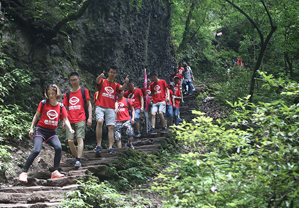上午9點(diǎn),登山拓展訓(xùn)練在青城后山正式拉開序幕,100余名員工隨機(jī)分為十組,斗志昂揚(yáng)地從山腳出發(fā),沿著曲折的登山步道往山頂沖刺。按照拓展訓(xùn)練要求,各小組全體成員一路上不僅需要高度的團(tuán)隊(duì)協(xié)作快速前進(jìn),還必須在指定的地點(diǎn)完成規(guī)定任務(wù)。經(jīng)過三個(gè)半小時(shí)的奮力攀登,十支隊(duì)伍陸續(xù)成功登頂。艱苦的攀登過程中,大家挑戰(zhàn)自我極限,磨練意志,雖汗水淚水交織,打濕衣衫,但在大家高效的協(xié)作中,深刻地感受到了團(tuán)隊(duì)的力量,并圓滿完成既定任務(wù)!
