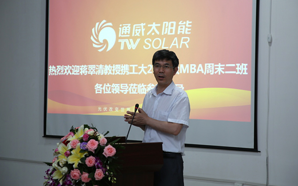 近日,合肥工業(yè)大學(xué)教授蔣翠清攜工大2014級(jí)MBA周末二班學(xué)員到訪通威太陽能(合肥)有限公司,開展為期半天的參觀交流活動(dòng),通威太陽能(合肥、成都)有限公司首席財(cái)務(wù)官周丹熱情接待并座談。
